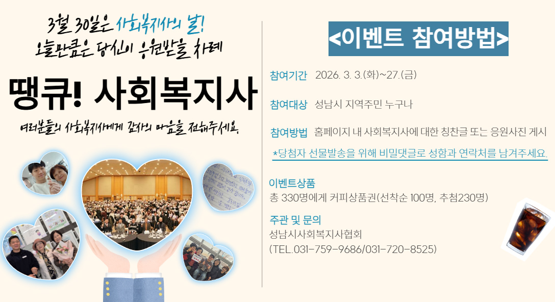 | 191 | 이벤트 종료 안내 | 성남시사회복지사협회 | 2025.03.28 | 80 |